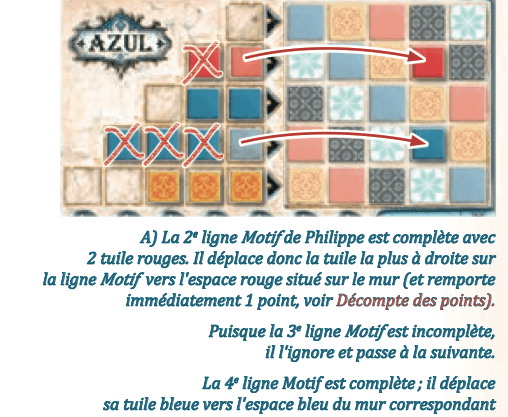 Chaque joueur dispose d’un plateau a compléter avec différentes mosaïques (tuiles de couleur) . Des disques sont placés au centre de la table, on tire au sort les mosaïques et on en place 4 par disque. Chacun leur tour, les joueurs choisissent des mosaïques et les placent sur leur plateau jusqu’à ce qu’il n’y en ait plus au centre de la table. Ensuite on passe à la décoration du Palais. Cette phase est réalisée par tous les joueurs en même temps. Ceux-ci doivent déplacer leurs tuiles qui forment des lignes complètes vers leur mur en respectant le code couleur. Il est important de réfléchir avant de choisir les tuiles et de les placer car chaque placement sur le mur vaudra des points en fonction de leur position. La partie se termine lorsqu’un joueur a fait une ligne complète sur son mur et c’est le joueur qui obtient le plus de points qui a gagné la partie.