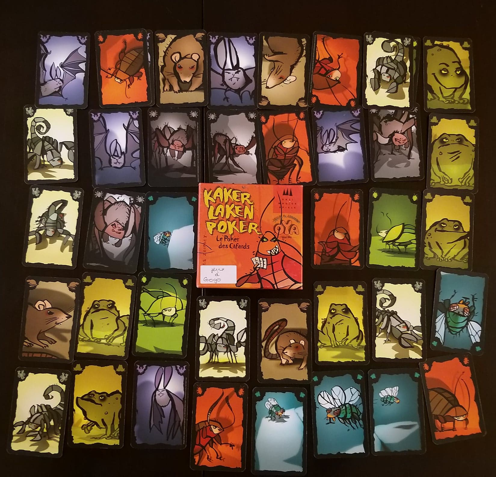 Les cartes représentent différentes sortes de bestioles très sympathiques (chauve-souris, cafard, crapaud, scorpion…). Un des joueur pose une carte devant lui face cachée et annonce un animal à un joueur qui va alors devoir décider s’il pense que le joueur ment ou non. Si ce dernier tombe juste, le joueur qui a présenté la carte la reprend et la dépose face visible devant lui. S’il se trompe, c’est lui qui la prend devant lui. Le premier à se retrouver avec 4 animaux de la même espèce a perdu. Vous pouvez aussi décider de repasser la carte à un autre joueur !