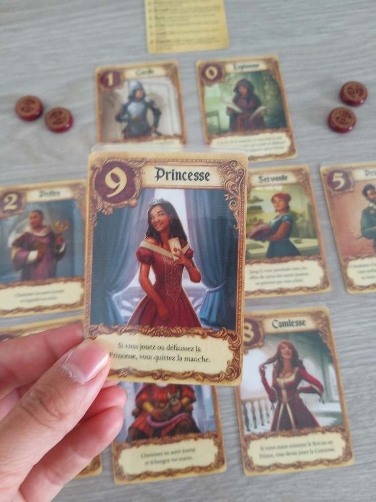 - La Comtesse : Vous devez impérativement la jouer si vous avez le Roi ou un Prince.