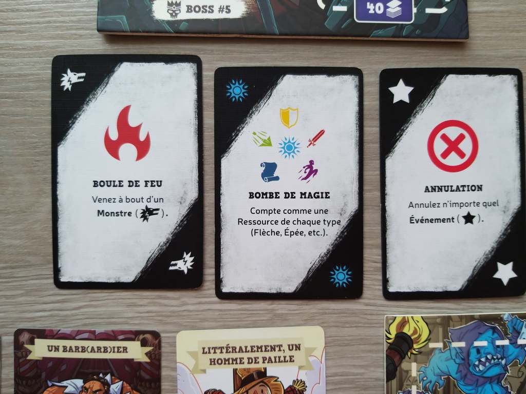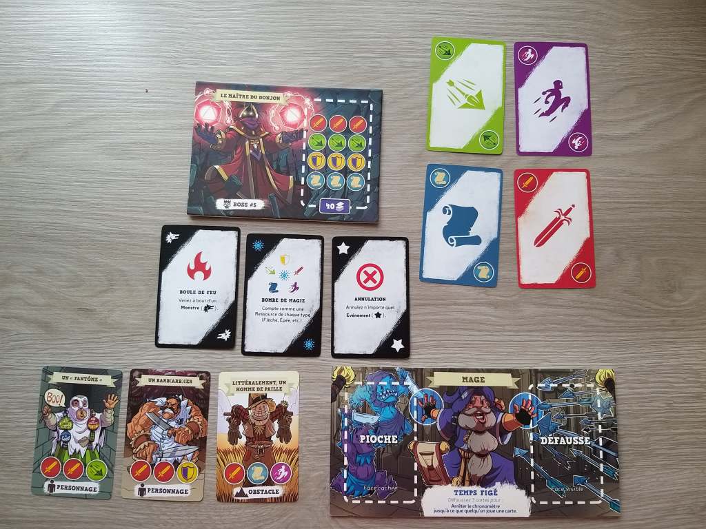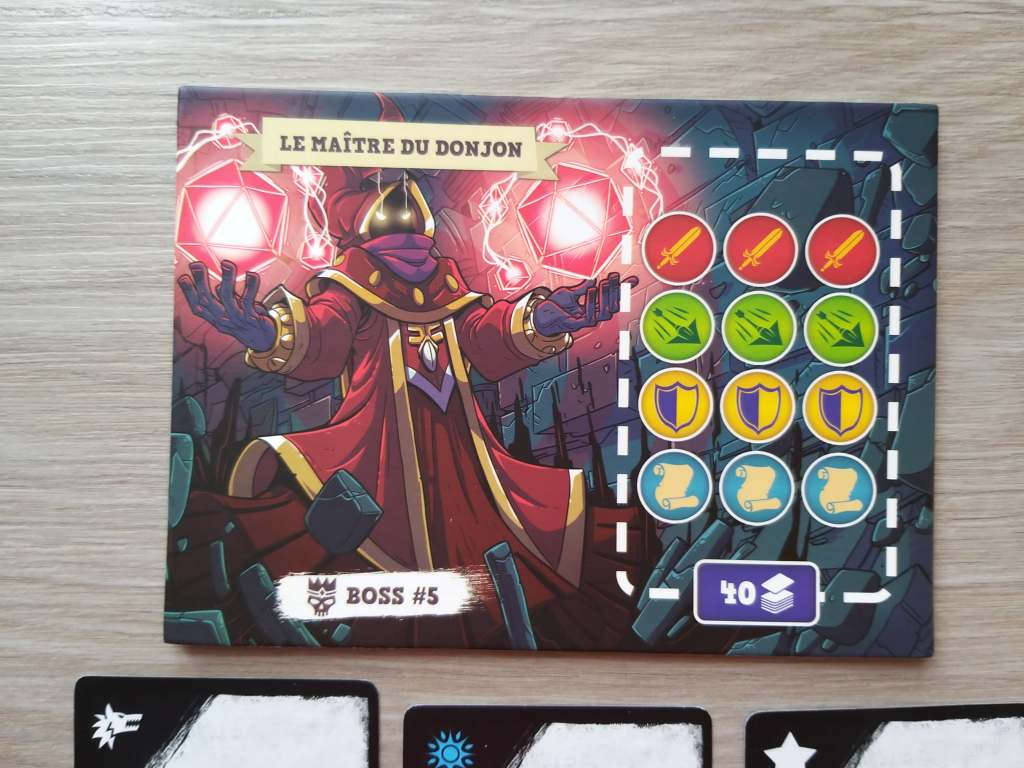 5 minute Dungeon est un jeu familial, facile à prendre en main. La communication est le maître mot de ce jeu, pour vaincre les boss en moins de 5 minutes, mieux vaut être une très bonne équipe biens soudée. C’est très nerveux et ça met beaucoup la pression. Vous pouvez choisir votre niveau de difficulté en fonction des boss. Et forcément vous avez plus de chance de gagner si vous jouer à 5 car plus de cartes en jeu. C’est donc dommage de dire que le jeu se joue à partir de 2 joueurs alors qu’il est quasiment impossible de gagner à deux. A part ça c’est un jeu qui fonctionne très bien avec les enfants. Le design des cartes, le nom des boss et l’univers entier est top et plaira à toute la famille
