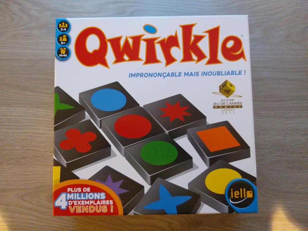 L’avis de l’équipe : Voilà le jeu inter-générationnel par excellence. On peut jouer à Qwirkle de 6 à 100 ans ( à peu près hein) Le but, gagner en formant les plus longues séries, couleurs, formes. La mécanique de jeu est simple et tactique. Tentez de faire des Qwirkle. Et essayer de piéger votre adversaire.