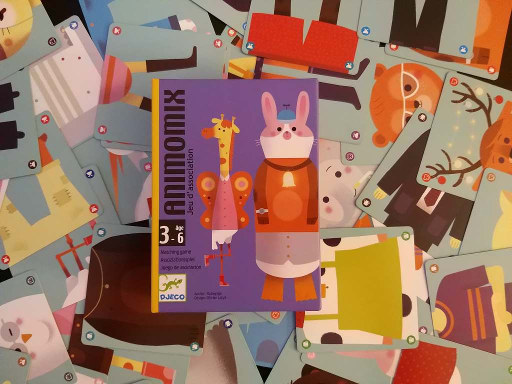 Animomix est un petit jeu qui s’inspire des 7 familles et qui plaira aux tout petits, même sans respecter la règle du jeu , ils adoreront créer des créatures complètement folles comme un papillon avec un corps de girafe et des pieds de chats.