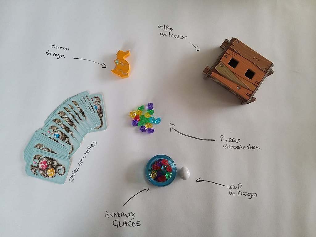 Avec l’aide de papa dragon, les joueurs retirent les anneaux gelés les uns après les autres et font fondre la colonne glacée. Voilà que les pierres étincelantes dégringolent ! Mais attention : ils ne peuvent pas tout ramasser. Qui aura le plus de pierres étincelantes à la fin de la partie ?