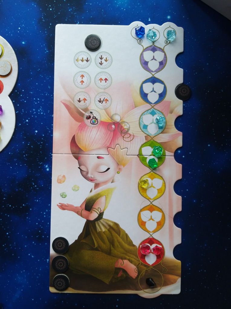 Chakra c’est joli, c’est prenant, c’est addictif et c’est zen (enfin presque) pendant toute la partie on élabore des strategies pour être le premier joueur a avoir harmonisé au moins 5 chakra. Le jeu est très corsé et demande beaucoup de reflexion et d’expérience pour maitriser ses chakra. Le matériel est vraiment très beau et ça se joue aussi bien à 2 qu’à 4 joueurs. Il y a une part de hasard avec le tirage au sort des gemmes mais ce n’est absolument pas gênant.
