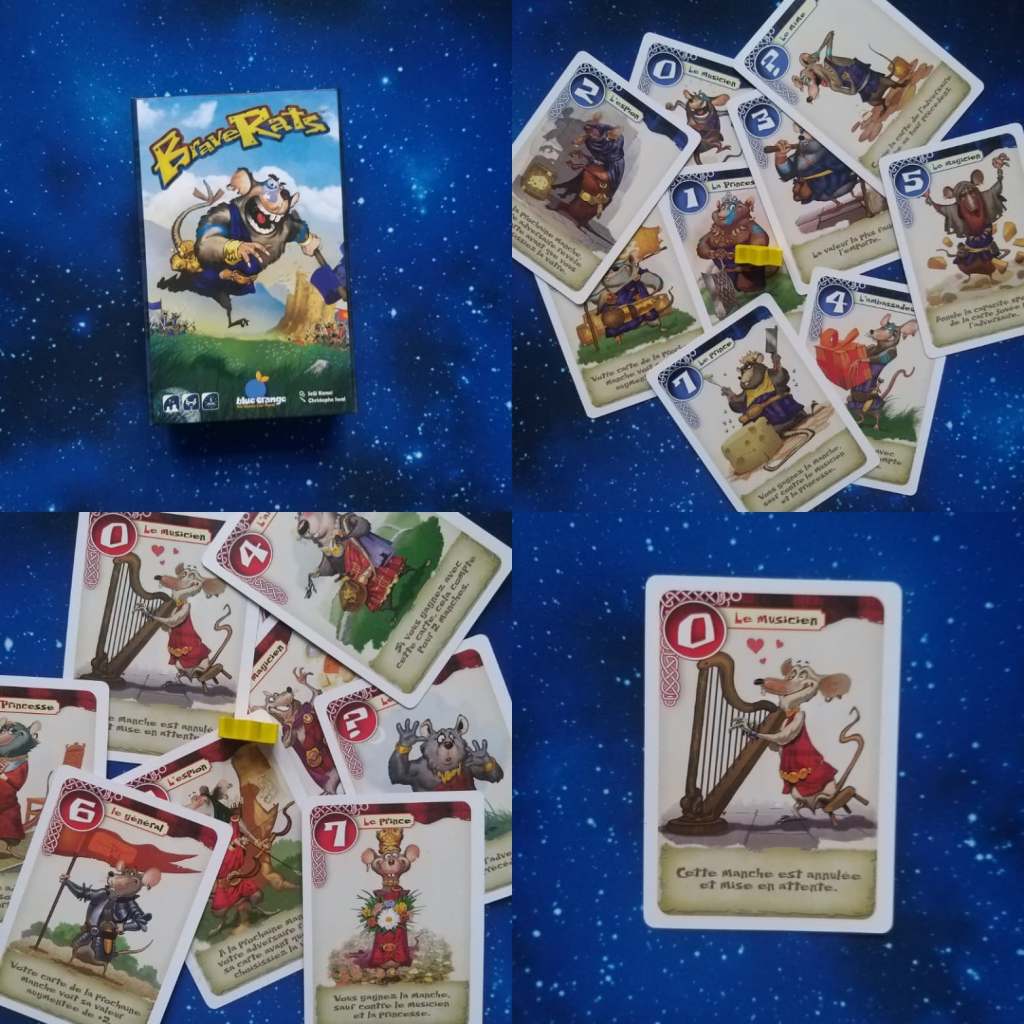 BraveRats est un jeu minimaliste de l’auteur de Love Letter pour deux joueurs. Chaque joueur a 8 cartes en main (numérotées de 0 à 7 et avec un pouvoir spécial). Chacun en choisit une, la pose et c’est la plus haute qui l’emporte. Le premier joueur a avoir gagné 4 rounds est le vainqueur. Et les pouvoirs spéciaux vont grandement influencer la partie !