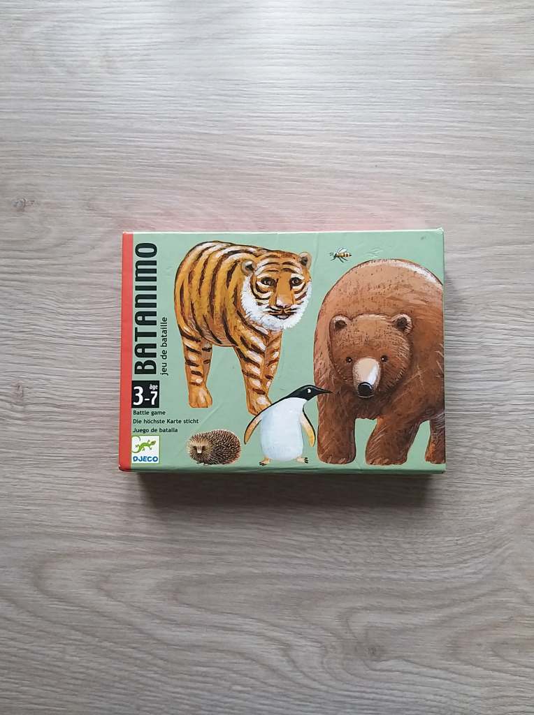 Parfait petit jeu à faire avant d’aller se coucher. Les règles sont très simples , on retourne les cartes jusqu’à trouver le doudou, l’oreiller et la couverture du petit personnage. Mais avant de les trouver on va collecter des cartes ; des attaques de bisous, une chanson, des chatouilles, un bisou esquimau. Toutes ces cartes seront à « distribuer » en fin de partie avant d’aller au dodo.